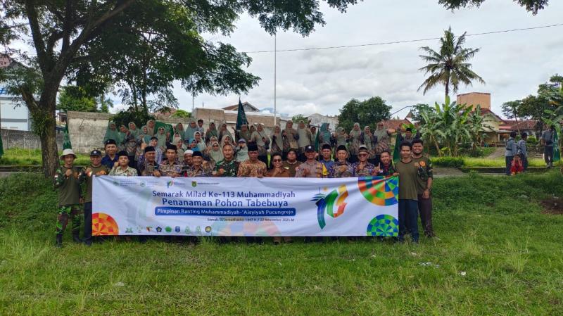 WUJUD KEPEDULIAN LINGKUNGAN, PRM PUCUNGREJO KOLABORASI PEMERINTAH DESA PUCUNGREJO TANAM RATUSAN TABEBUYA