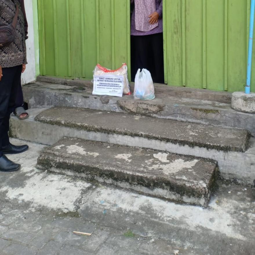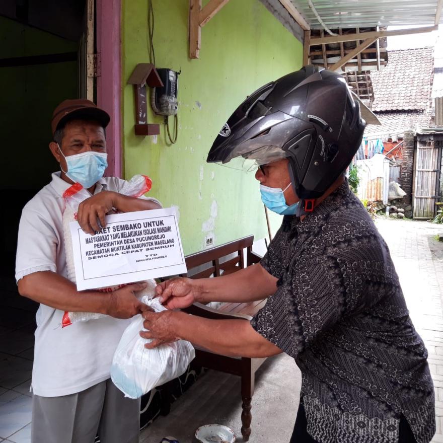 Pemerintah Desa Pucungrejo ikut berperan dalam mendukung warga yang sedang isolasi mandiri dengan menyalurkan bantuan sembako yang berisi bahan pokok sebesar Rp 150.000,- yang sudah termasuk dalam anggaran PPKM sehingga diharapkan dapat meringankan beban keluarga yang diharuskan untuk isolasi mandiri. Perangkat desa pun ikut bergotong-royong dalam memberikan bantuan logistik ini.